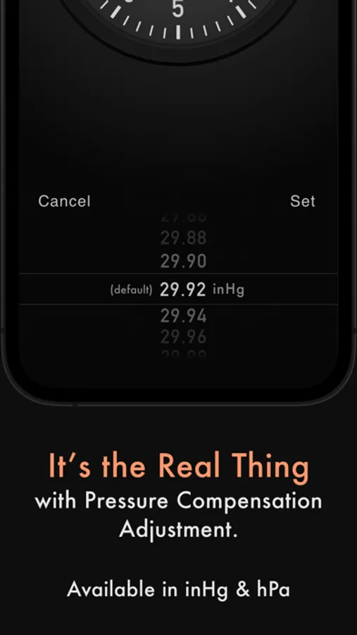 Since air pressure at the same location with the same altitude varies everyday due to different weather conditions, the variation would cause a small error in altitude reading. It is negligible for leisure users but crucial for pilots (and serious nerds). Therefore, in real airplanes as well as in our app, there is a feature for you to adjust the air pressure compensation. You may find more instructions inside the app.