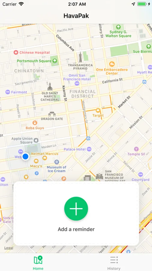 HavaPak is a location reminder for busy people, you can determine a region for reminding and when you have entered the region.