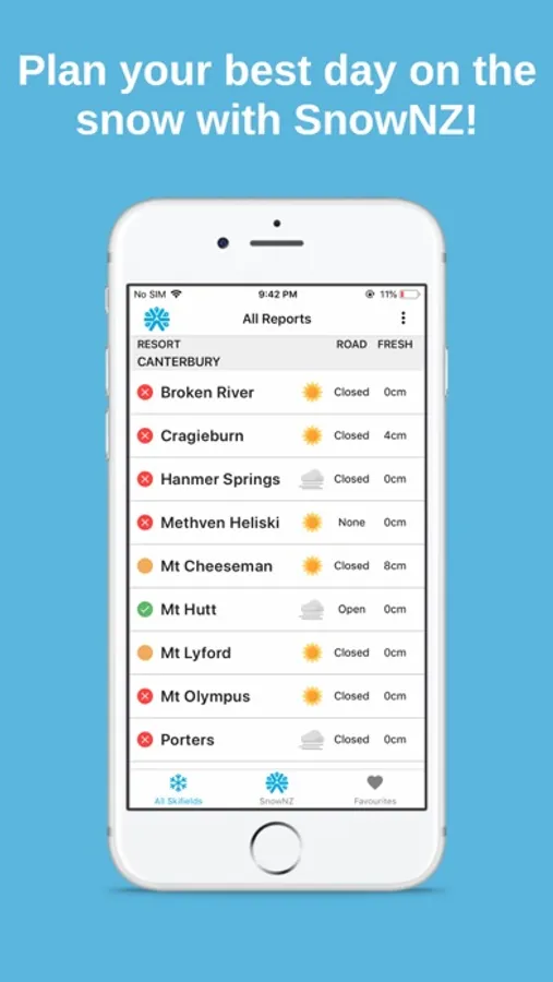 Plan your best day on the snow with SnowNZ! SnowNZ is the place to go for everything ski or board related in New Zealand! Find the latest ski reports, weather and webcams for all the ski areas. Plus, save favourites for quick and easy access!