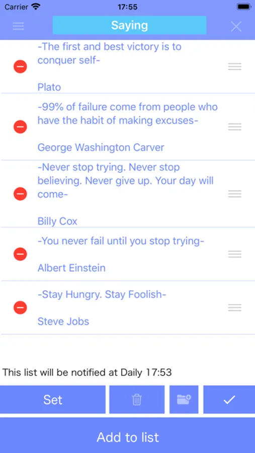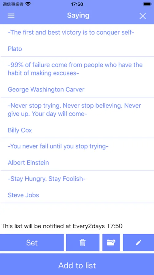 ・ Register what you want to memorize, such as foreign language words, and receive a random notification every day.