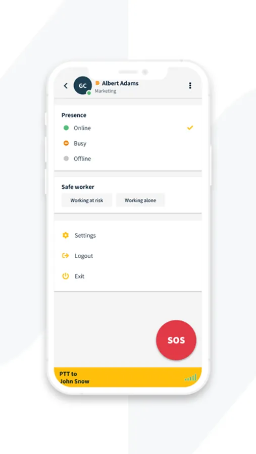 • Safe worker - working alone and working at risk status updates and supporting command and control center features.