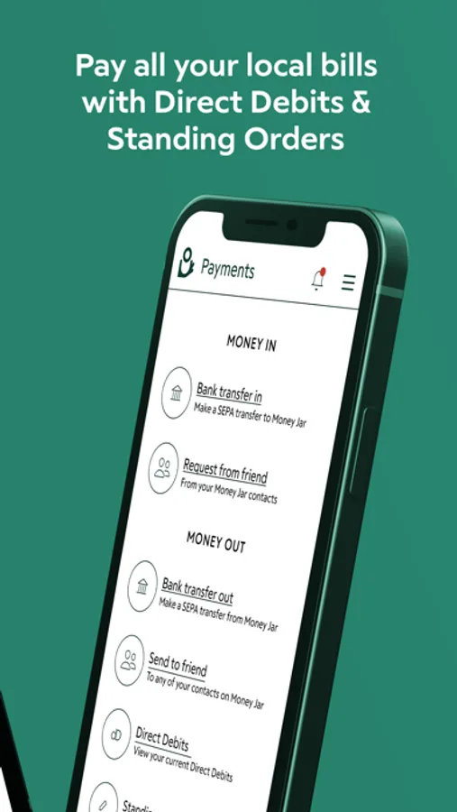 Pay all Irish bills with an Irish IBAN (International bank account number). This means you can set up and pay all your household bills using the Money Jar app, unlike other digital accounts.