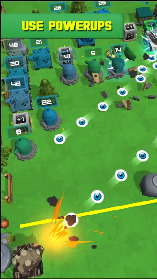 Each wave the enemy tanks will get stronger, pick up extra balls and power-ups to get the drop on them.