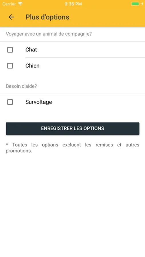 Vous désirez payer par carte de crédit ou débit? Vous voyager avec un chien? Vous avez besoin d’une Van?