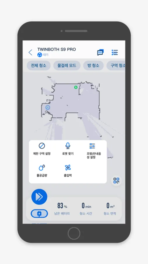 ·로봇 청소기 제어, 청소 방향 설정, 청소 환경 설정 등