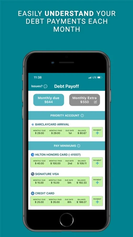 2) Savvy tells you what you pay and how much to pay towards each of your debts each month. Once your minimums are paid, Savvy will tell you where to put the extra money.
