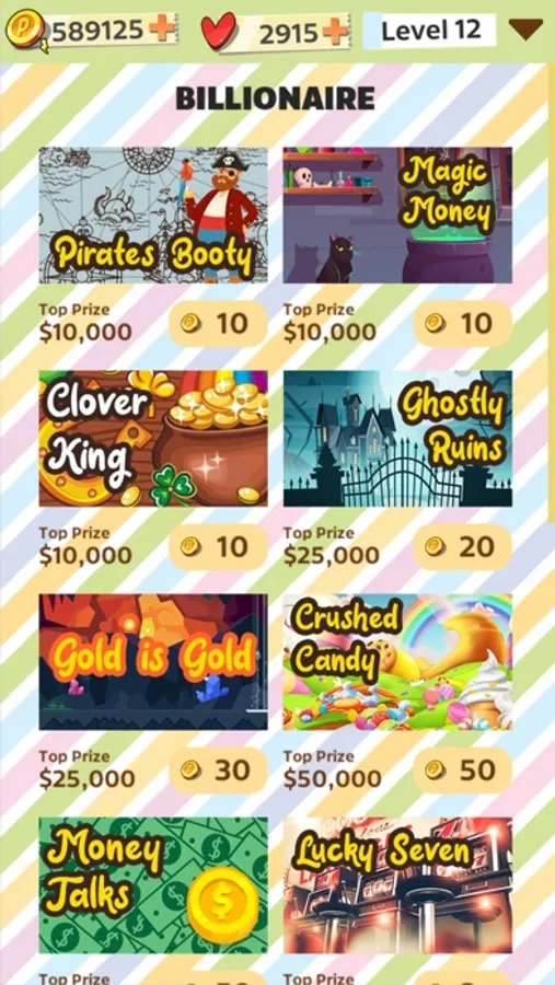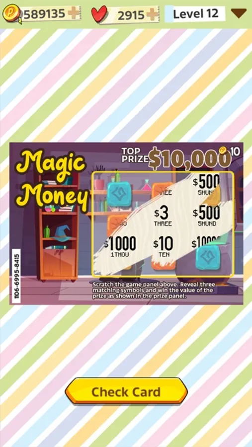 Level up and unlock new scratch cards progressively as you play. Scratch off bonus panels to win bonus money.