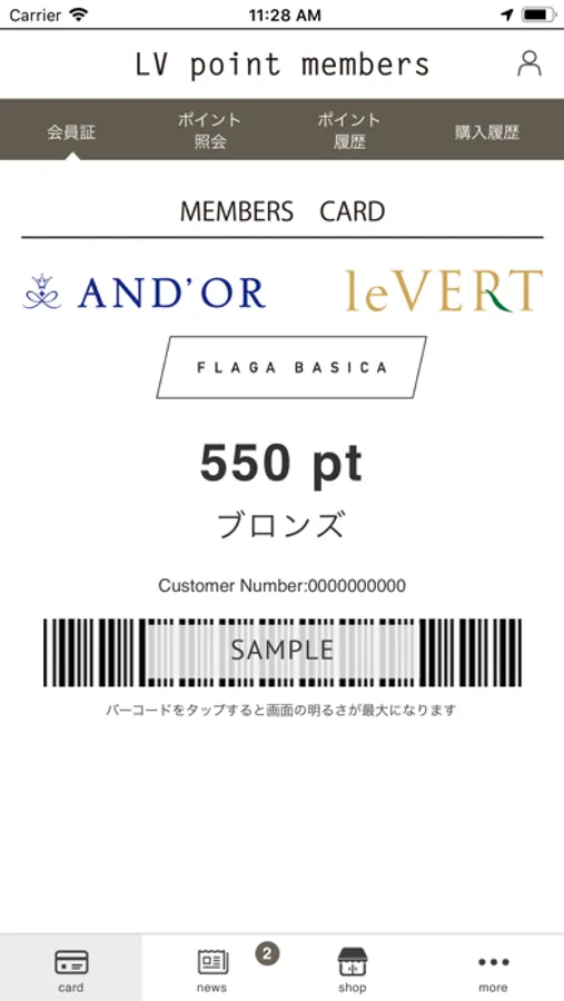・会員証バーコード(店頭でご購入の際にレジでご提示ください)