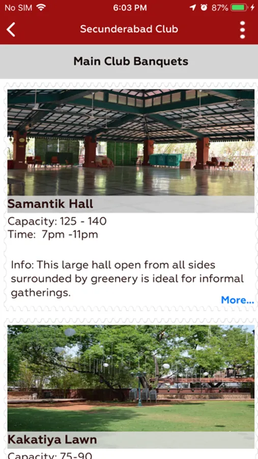 The Club has a large number of popular sports facilities including a cricket ground and two swimming pools functioning around the year. It has 5-star accommodation that includes heritage suites. It has an extremely well-laid out and air conditioned bar, dining halls, banquet halls as well as a number of lawns for large gatherings and parties.The Club has a large food court that provides a multitude of cuisines ranging from continental and Mughlai to Chinese and Hyderabadi, and of course, north and south Indian food.nnA Colonnade patterned in the old British style, a spacious Ball Room and an Open Air Theatre showing movies regularly are some of the other facilities in the Club.The Secunderabad Club is probably one of the few Clubs in the world which has its own Sailing Annexe.
