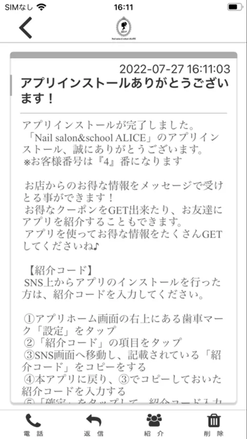 ALICEのアプリをSNSを通じてお友達に紹介する事ができます。