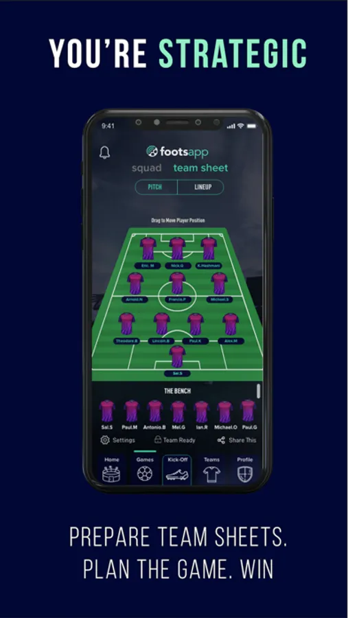 5s, 6s, 7s and 11s. We’ve got it all. Different formations for different scenarios, ootsapp caters to all. With our dynamic drag and drop interface you can sort your team out within minutes! Multi-kit options so the manager and player have a nice look at lineups.