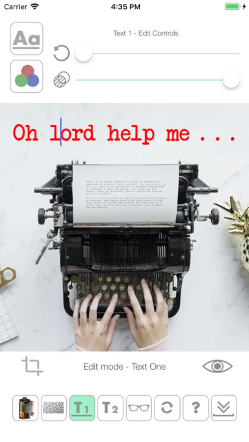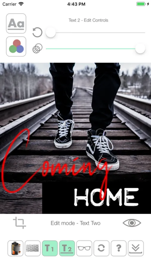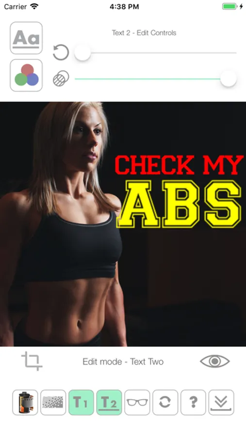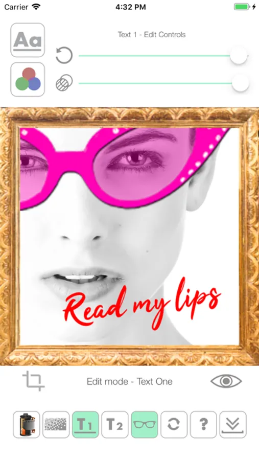 - simple pinch and zoom gestures for adjusting two text lines and glasses.