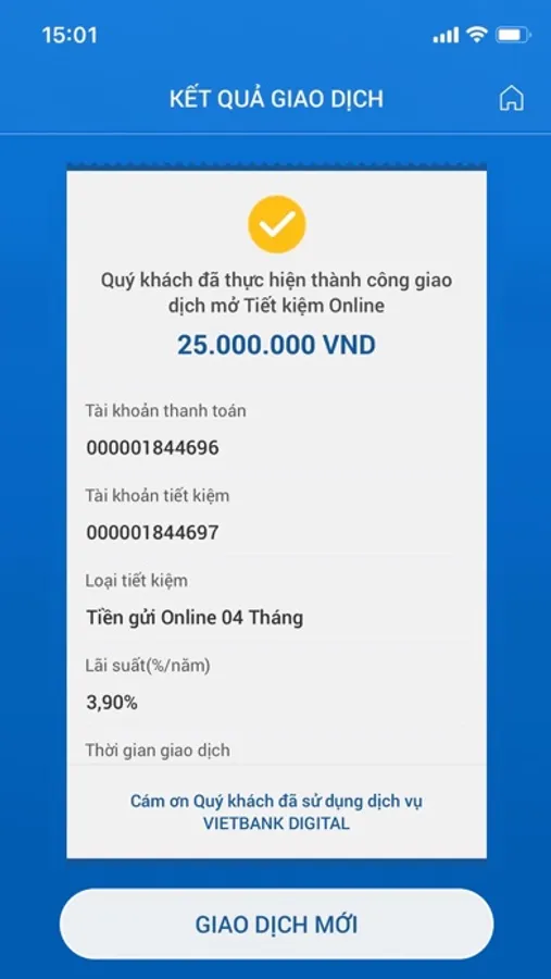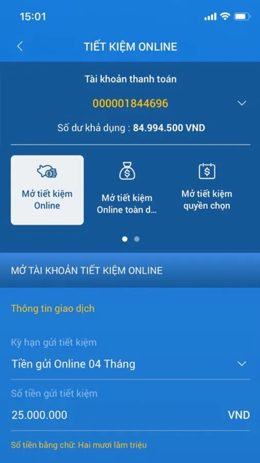 Tiết kiệm trực tuyến: Gửi và rút tiết kiệm trực tuyến với các gói lãi suất hấp dẫn, thao tác đơn giản, an toàn.