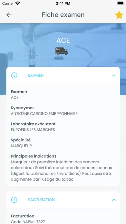 Afin de simplifier vos futures recherches, une mise en favoris des analyses est disponible.