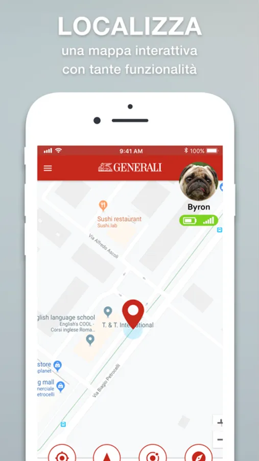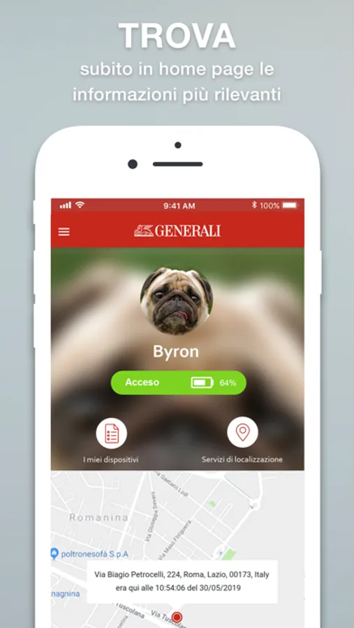 · Tenere sotto controllo la posizione dell’animale domestico, indicandoti in ogni momento la localizzazione sulla mappa e i suoi spostamenti
