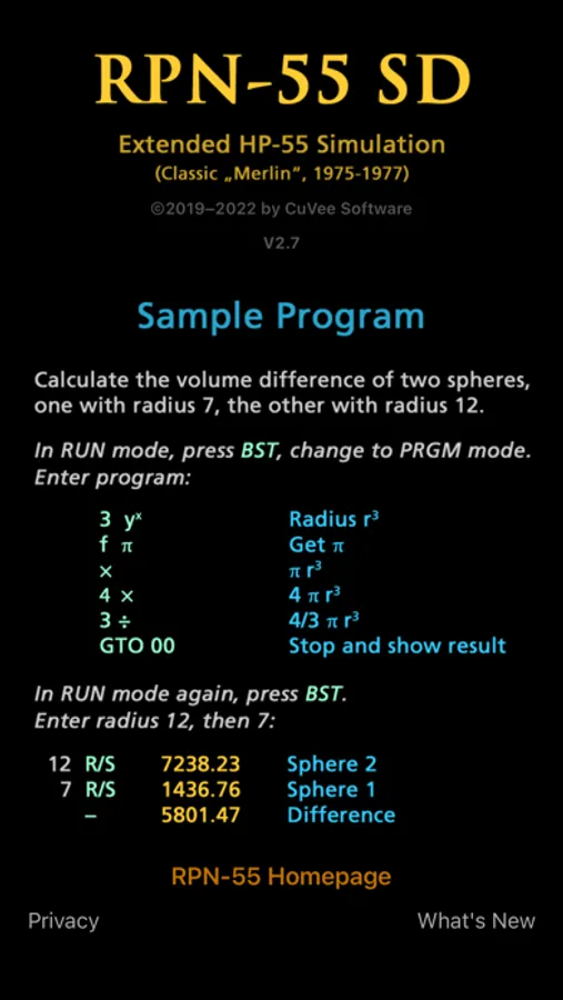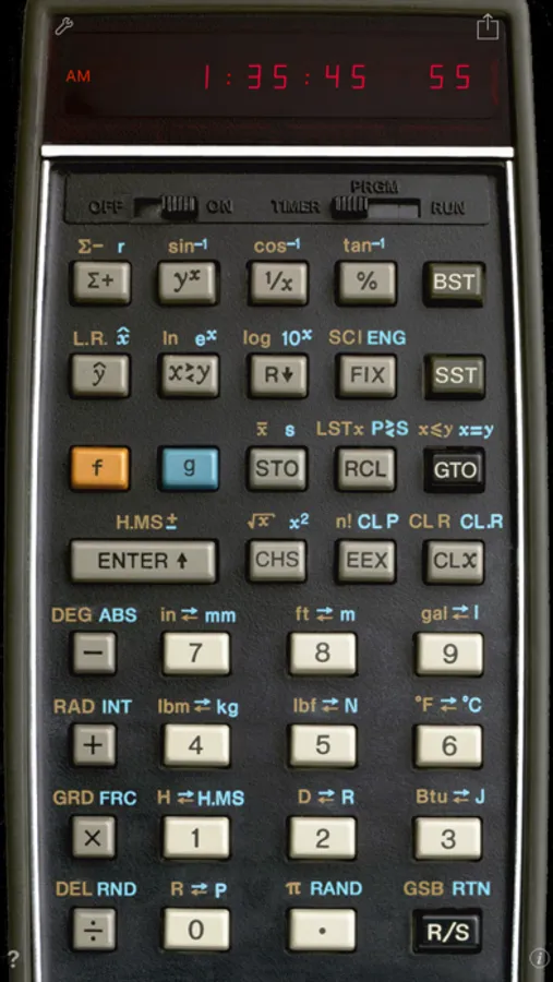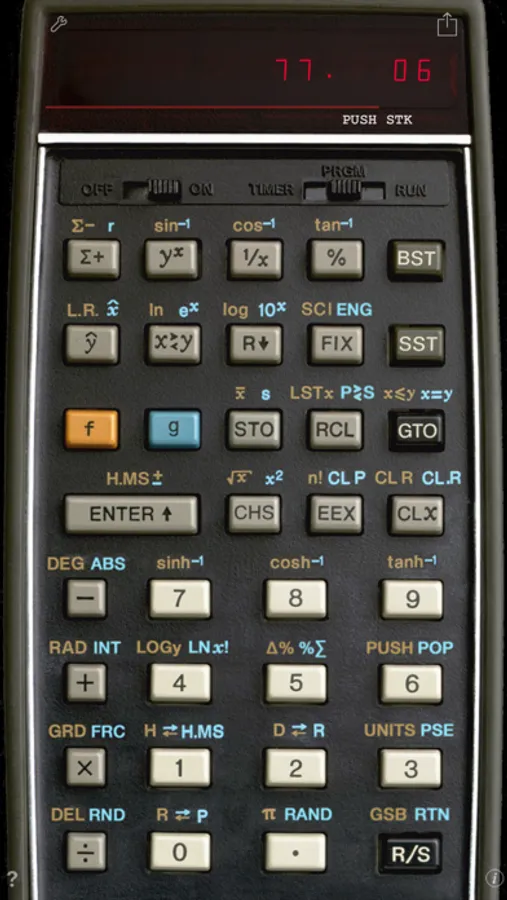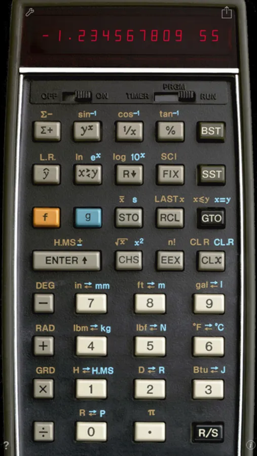 RPN-55 SD is the first photo-realistic simulation for the iPhone of Hewlett-Packard's low-cost alternative to the famous HP-65 programmable scientific calculator. Produced from 1975 through 1977, it was the "Merlin" member of the classic HP calculator series, priced at $395. HP claimed that it featured "(...) more pre-programmed functions than any other scientific pocket calculator in the world."