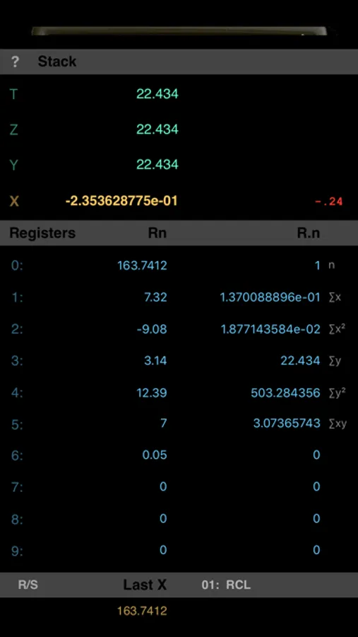 • 20 registers, "continuous", with unrestricted store/recall arithmetic