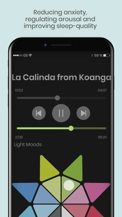 The MusicStar will aid you to, quickly and easily, select the playlists that have the desired effect, e.g. to soothe and calm, relocate focus from anxiety or stress, or as support for falling asleep etc.
