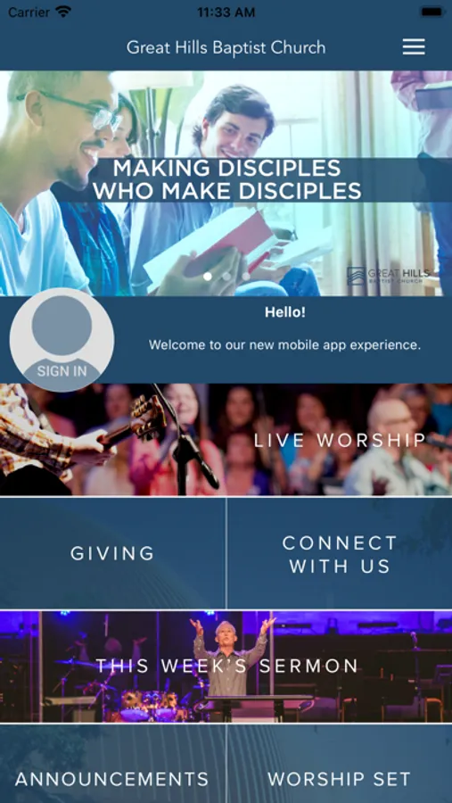 Stay connected to life at Great Hills through our new mobile app! Everything from planning your visit to getting in-depth sermons and community through Connect Groups is right at your fingertips.