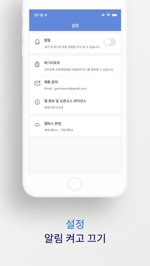 가천대학교 공지를 푸시 알림으로 제공합니다.