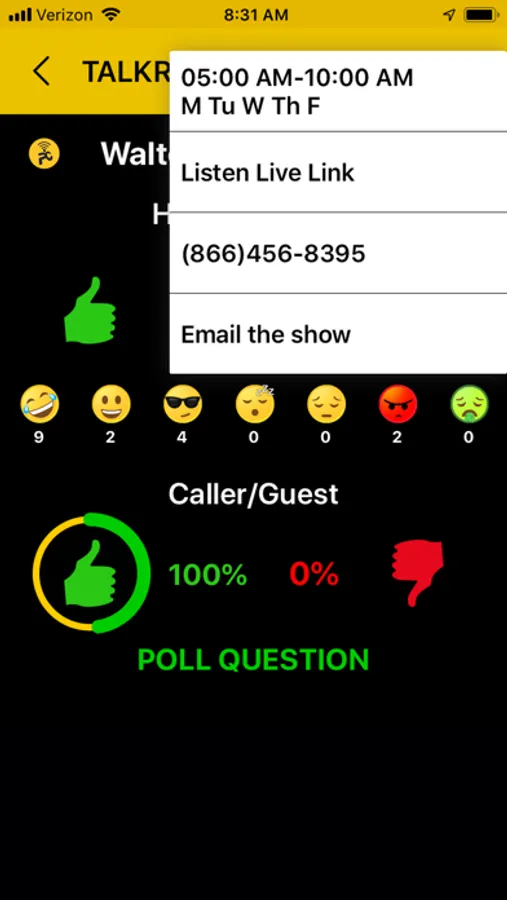 Not only does TALKRating provide streaming links to practically every talk radio show, it also allows listeners to talk back. There is no longer the need to call or email a show host to give your opinion. Simply give a thumbs up or thumbs down to agree or disagree with what the host is saying at that moment. Participate in polls posted by shows and our national polls. If you would still like to call or email a show, TALKRating has both the phone number and email address for most shows included.