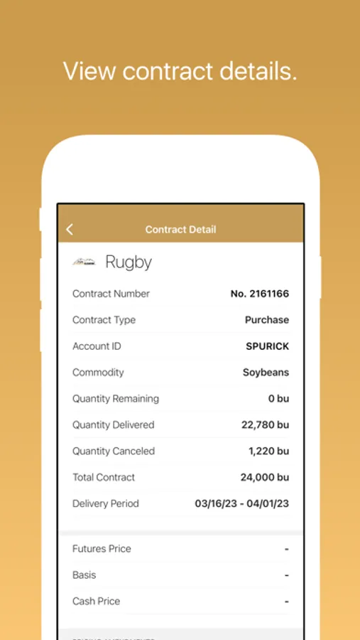 With a robust toolset that's constantly evolving to meet the demands of the modern grower, your Rugby Farmers Elevator app is built with powerful features to help you save time and maximize profits, including: