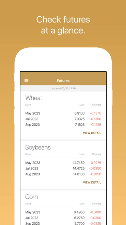 Futures: See Grains, Feed, Livestock, and Ethanol futures listed in order of your preference