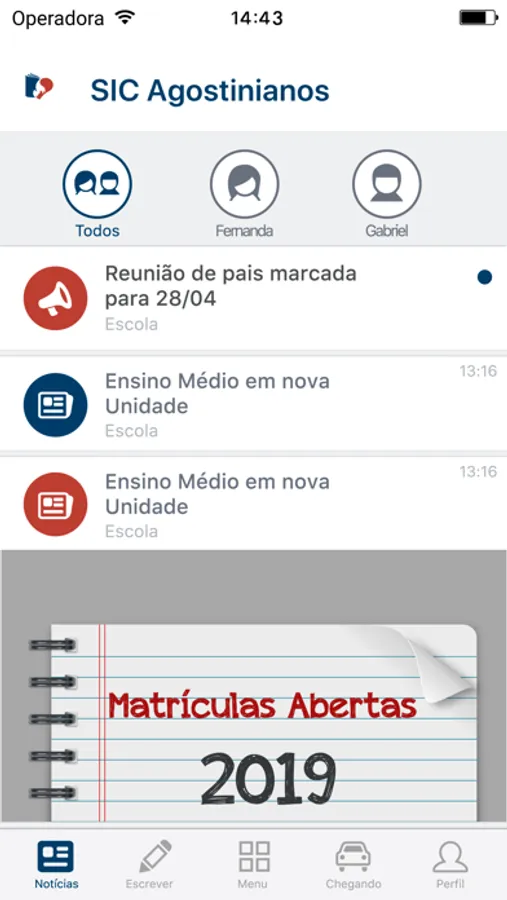 Com este aplicativo, os pais, responsáveis e professores poderão receber as últimas informações da escola, as notícias do dia a dia dos seus filhos e o calendário de atividades escolares.