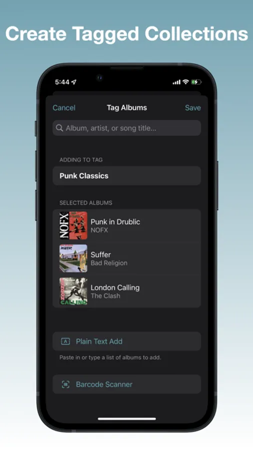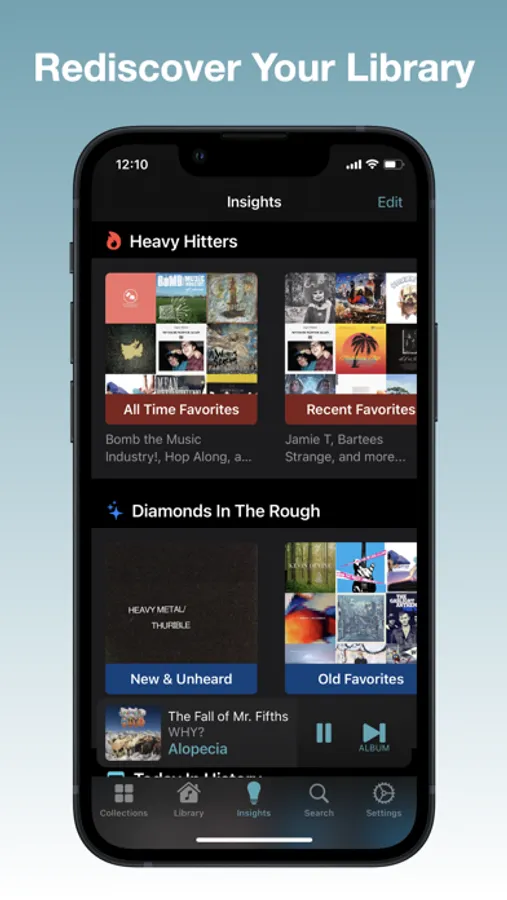 Explore built-in Insight Collections highlighting new and unlistened albums, old favorites you haven’t heard in a while, or even music from when you were in high school. Tag albums to create collections of your own. Customize the interface to match the color of your current album’s artwork with a simple two-finger tap.