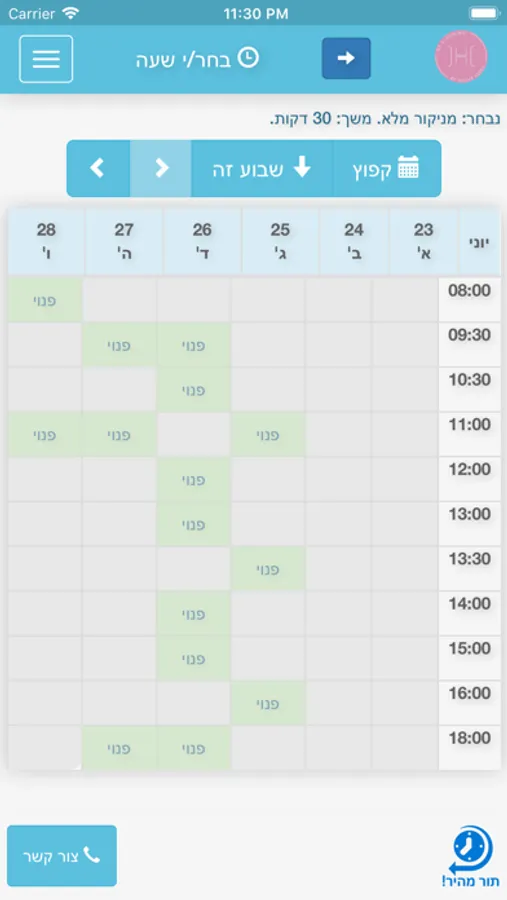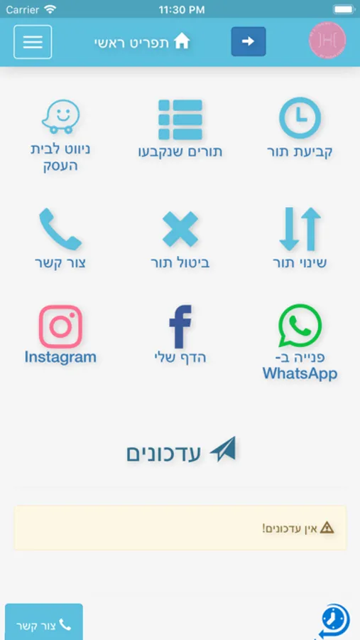 באפליקציה אפשר לקבוע תור, לנווט באמצעות Waze ולפנות אליי באמצעות ווצאפ.