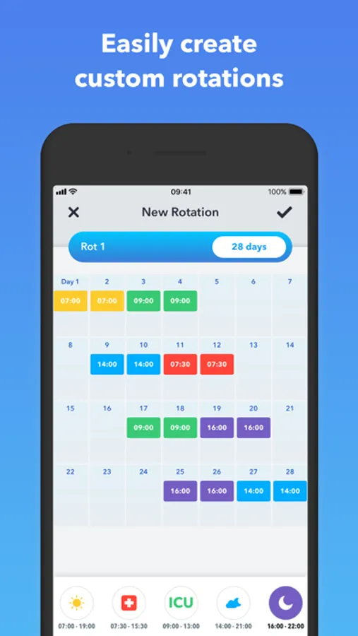 The app also includes a rotation feature, so you don’t have to add all shifts manually, which is very helpful. Just create a rotation and you can populate a year of schedule in a few seconds.