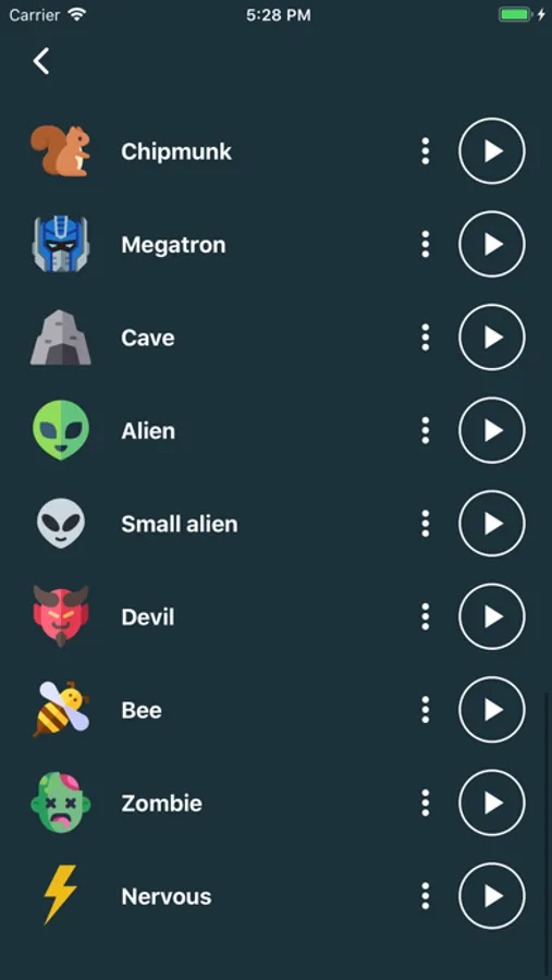 • More than 25 effects: robot, alien, zombie, helium, drunk, chipmunk, death, cave, underwater, devil, telephone, swirl, fan, ... and many more!