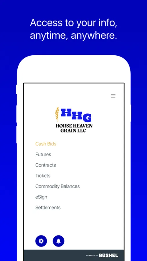 The Horse Heaven Grain LLC app is free, secure, and developed by the industry-leading Bushel platform.
