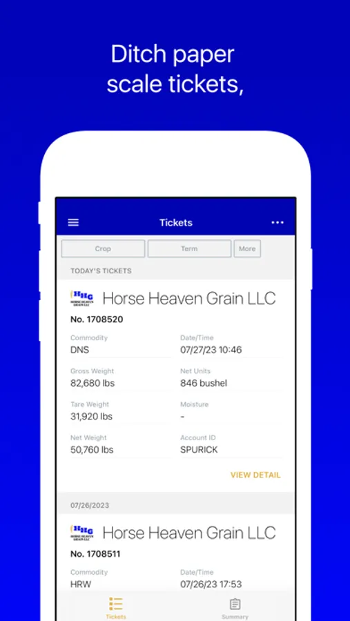 Scale Tickets: Easily access and filter scale tickets