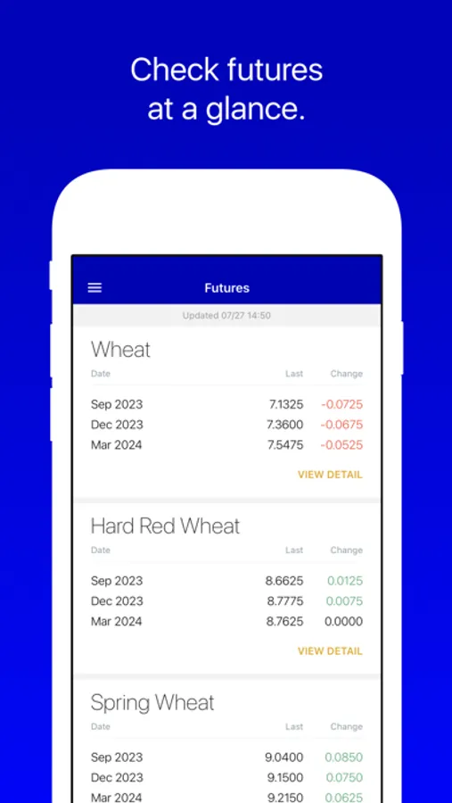 Futures: See Grains, Feed, Livestock, and Ethanol futures listed in order of your preference