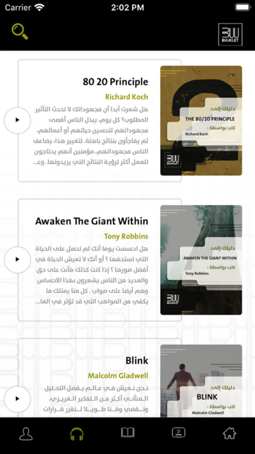 تعبت من القراءة الطويلة ؟ عاوز تقرأ الكتب كاملة ولكن وقتك لا يسمح ؟ الحياة حاليا على المسار السريع لذلك بوكليت بتساعدك على الاستفادة من تلخيص مجموعة من اهم الكتب فى ريادة الأعمال والتنمية الذاتية والتنمية البشرية فى العالم وقراءة الملخص في فترة زمنية لا تتجاوز 15 دقيقة .