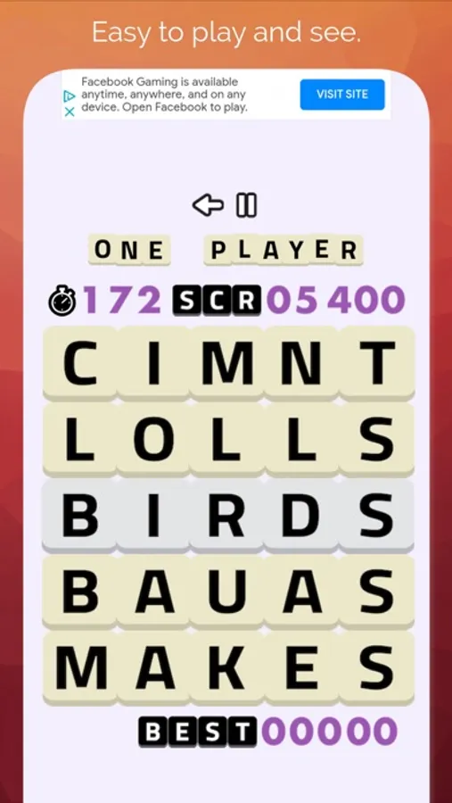 Easy to play word puzzle game with common words but challenging puzzles.