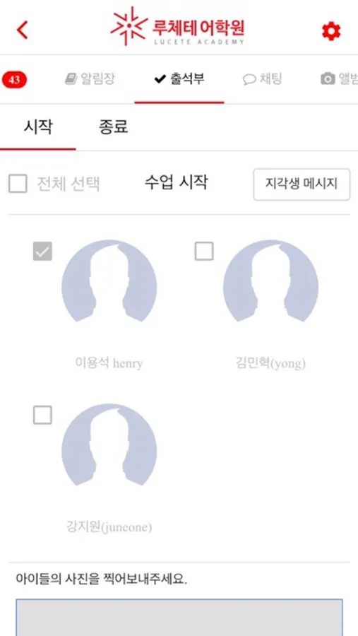 - 학원 알림장 실시간 제공