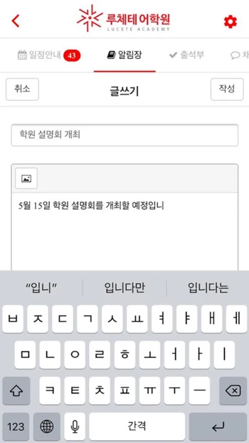 - 학원공지사항 실시간 안내