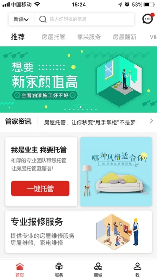 一站式的房屋托管、装修、租赁、二手房买卖社区,商城、社区物业维修各项服务。
