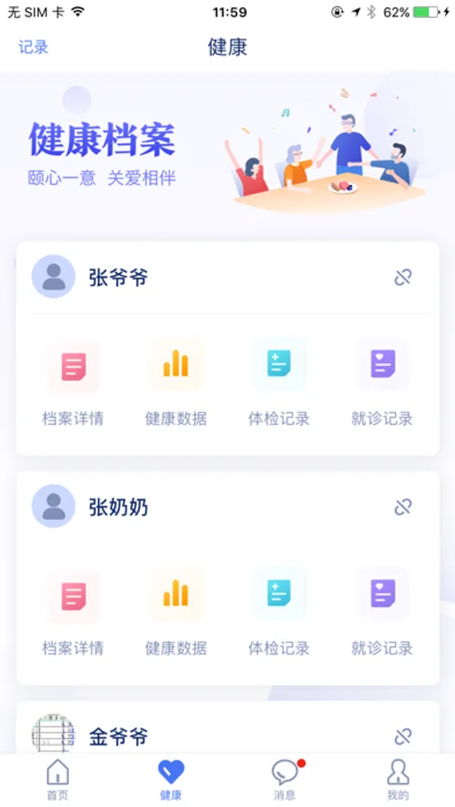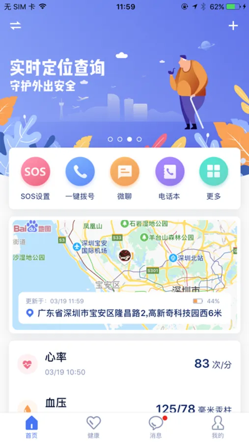 颐相伴APP是一款配合颐相伴硬件配套使用的APP,为家庭、社区和机构等提供物联化、智能化、便捷化、低成本的养老服务。主要功能特点:1、精准定位:在线获取老人实时位置2、健康关爱: 关爱老人、随时查看计步、心率、血压等健康数据报表3、SOS求救:老人呼救,子女能立即收到求救通知4、电话本:子女可以通过app来管理老人设备的通讯录,防止老人被一些陌生的电话骚扰