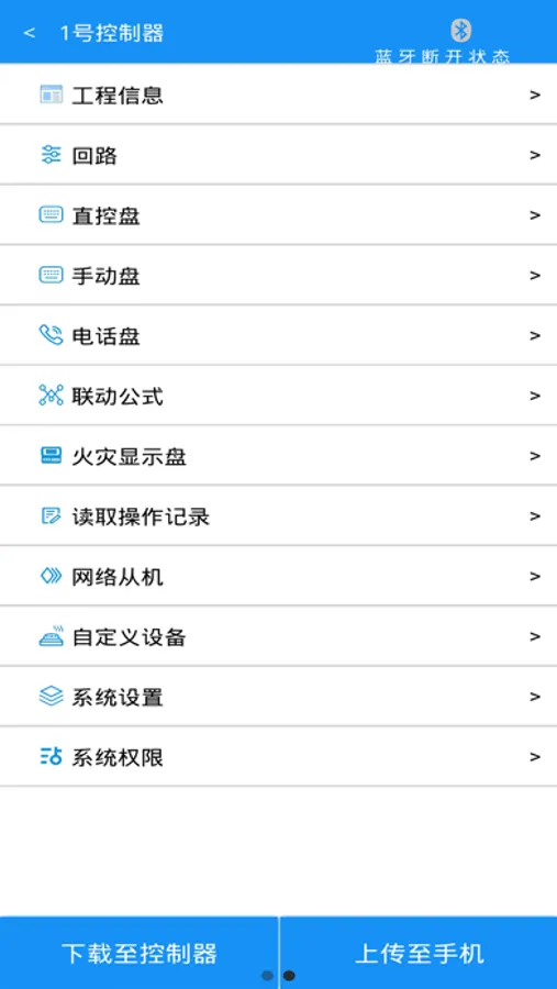 手机通过蓝牙连接气体灭火控制器,手机数据和控制器进行交互。