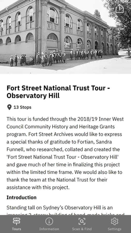 This app allows virtual heritage tours of the Fort Street school sites. This app has been supported by the Inner West Council and the Local History Grants Program