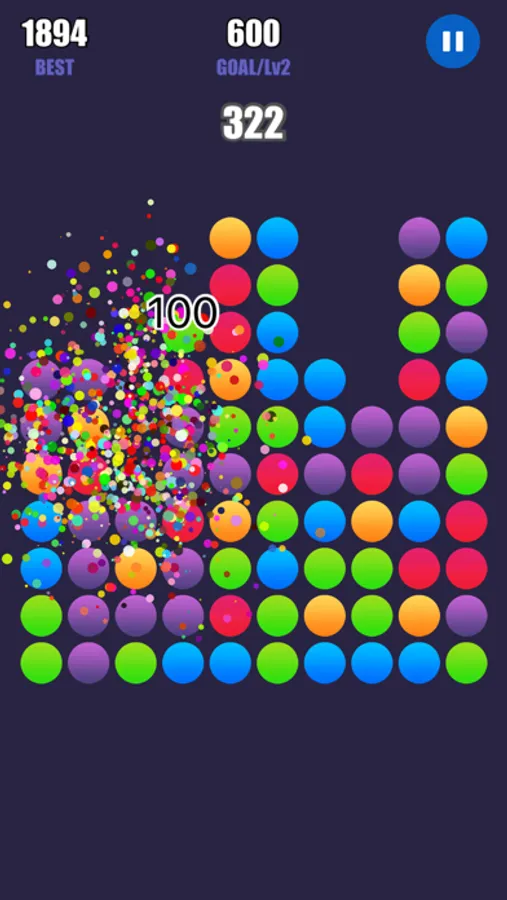 By merging adjoining balls of same color, you can earn scores exponentially . The more balls you merge each time, the higher score you get. You will figure out several ways to connect more balls with same color for a higher score.