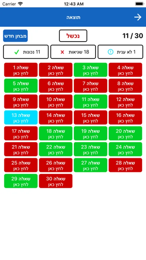 האפליקציה יודעת לרכז את השגיאות שלכם במבחנים ולאפשר לכם לחזור ולתרגל רק את השאלות הקשות ואת התשובות שעניתם לא נכון . כול זאת עם כלי מדידה מהמתקדמים והמשוכללים המכוונים אתכם להצלחה.