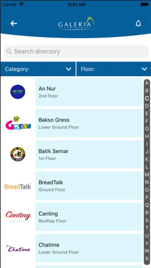 Galeria Mall yang resmi dibuka pada tanggal 8 Desember 1995, selalu konsisten dalam menyesuaikan trend dengan terus menghadirkan inovasi seiring berkembangnya sektor industri, teknologi dan Lifestyle masyarakat yang kian pesat, sesuai dengan segmentasi Galeria Mall kini yaitu Kaum Muda dengan usia 15-35 Tahun.