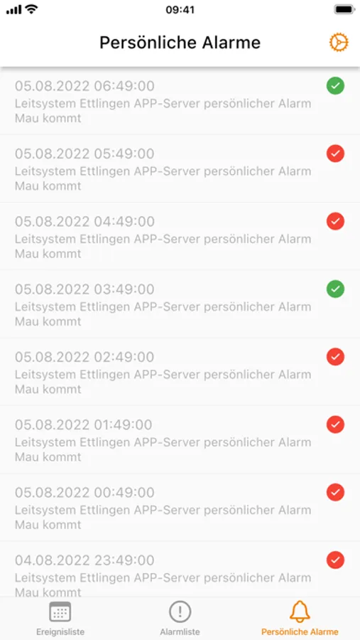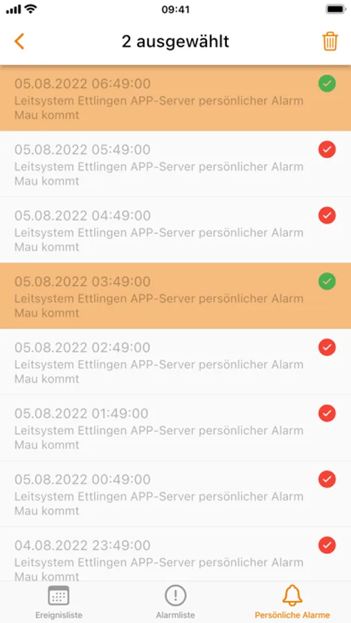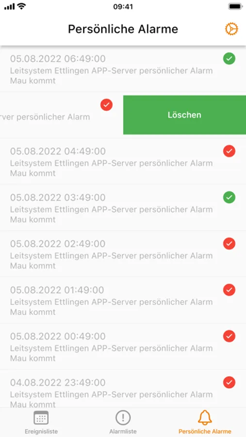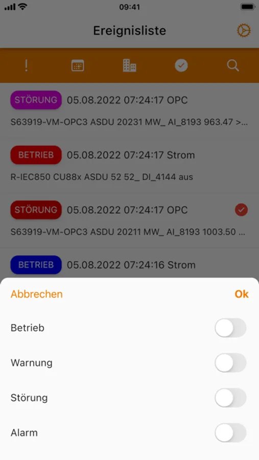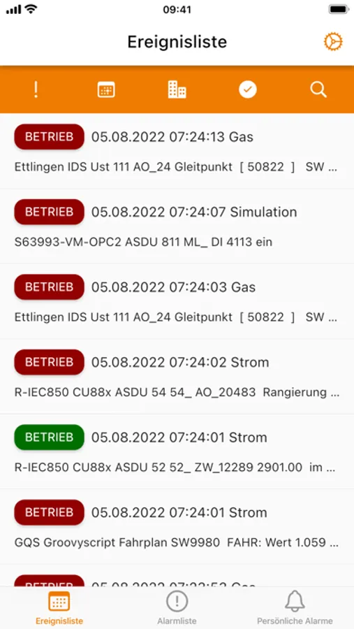 In der Ereignisliste werden alle Ereignisse der letzten zwei Wochen angezeigt. Die Liste kann vielfältig gefiltert werden.