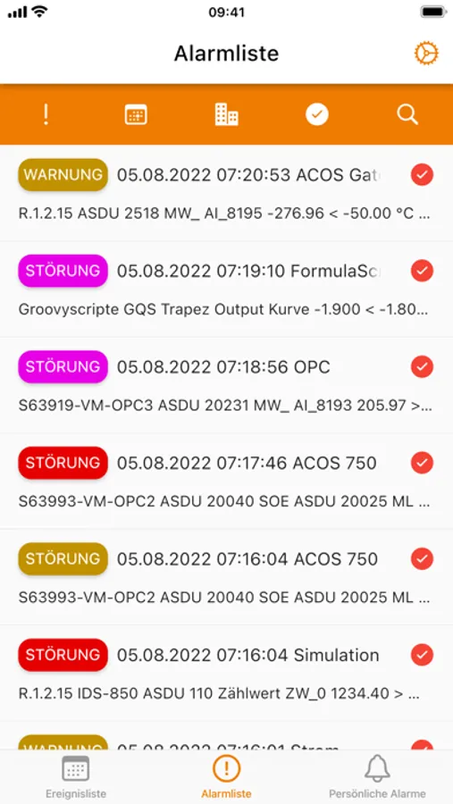 In der Alarmliste werden alle aktuell im System anstehenden Alarme angezeigt.