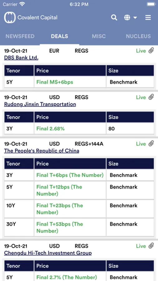 The application allows bond market participants like Banks, Investors and Issuers to track and participate in new bond issues.