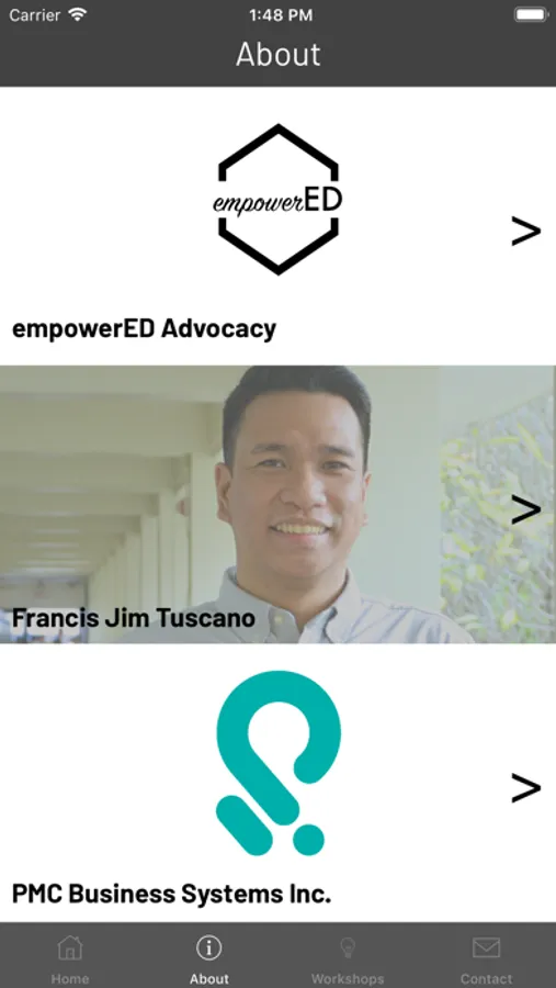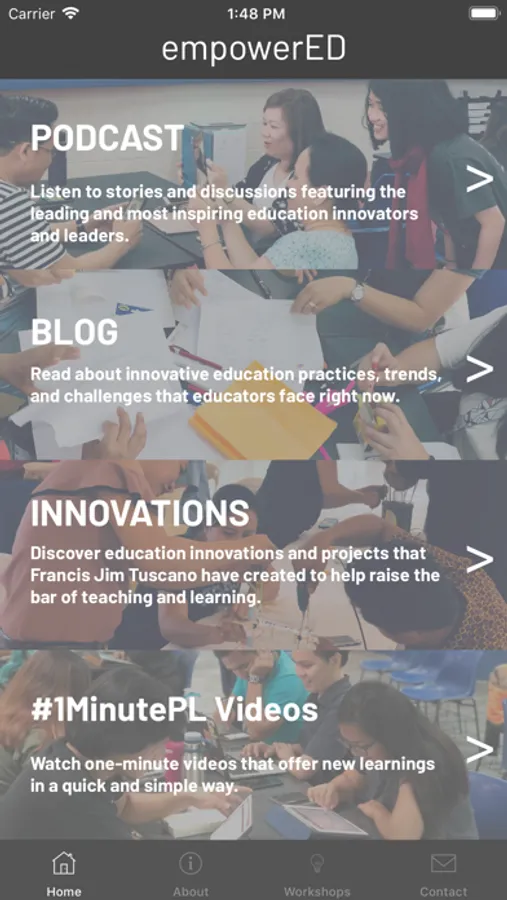 Interested in running relevant and inspiring professional learnings that focus on and answers the needs of your teachers, students, and school leaders, use empowerED+ to browse workshops and trainings that Jim Tuscano deliver to various schools and education organizations. Quickly send an email to contact him via app.